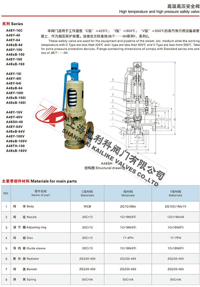 聲明:【A44Y,A48Y高溫高壓蒸汽安全閥】規格型號、結構尺寸由上海凱利科閥門有限公司提供,如何選擇適用的A44Y,A48Y高溫高壓蒸汽安全閥產品,使之在工藝控制中安全可靠、經濟適用,可致電我司銷售部門及技術部門,我們將在最短的時間內為您解答! |